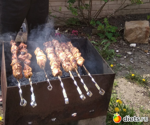 Жарили у свекрови во дворе, рецепт самый простой: мясо, лук, соль, перец, сок лимона и майонез