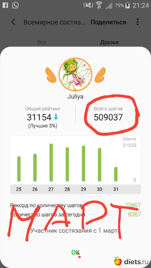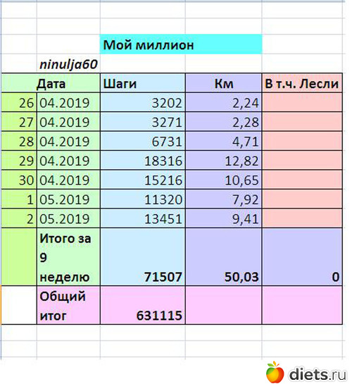Всем здравствуйте!!! Итого пройдено за неделю 103466 шагов