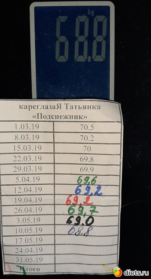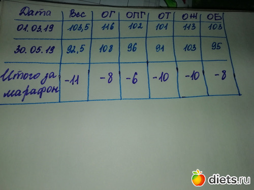 Весенний марафон я провалила. С каким пришла весом с таким и ухожу в летний. Главное не унывать и идти вперёд и все получится. Спасибо всем за весенний марафон и др встречи в летнем)