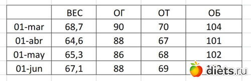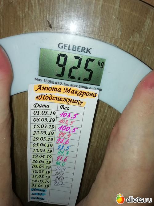 PS: у мужа пока вес стоит. Но за 4 месяца он похудел на 14.8. В груди минус7см, в талии минус 13, живот минус17, бедра минус 14.