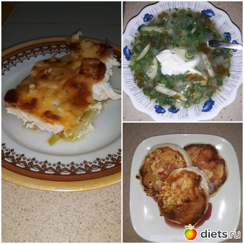 2. Ну порадовать себя вкуснотенью это всегда пожалуйста ( запеканка с кабачком, луком, помидорами и филе под сыром; щавель с яйцом и луком; сырники с вишневым сиропом домашним)