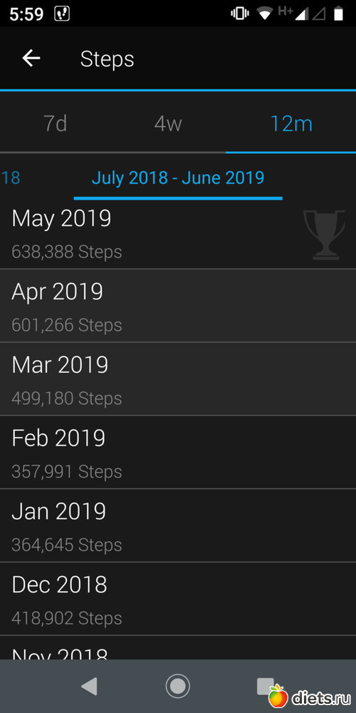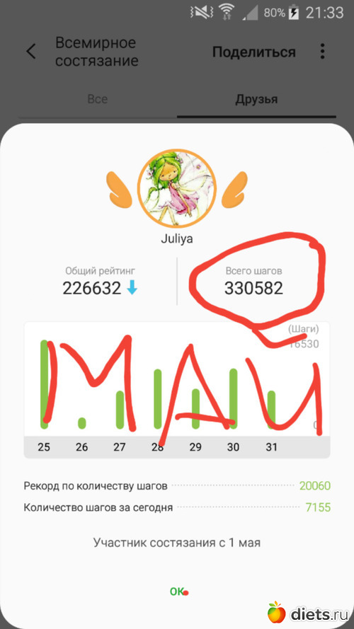 За май, судя по Together, 256.990 шагов.