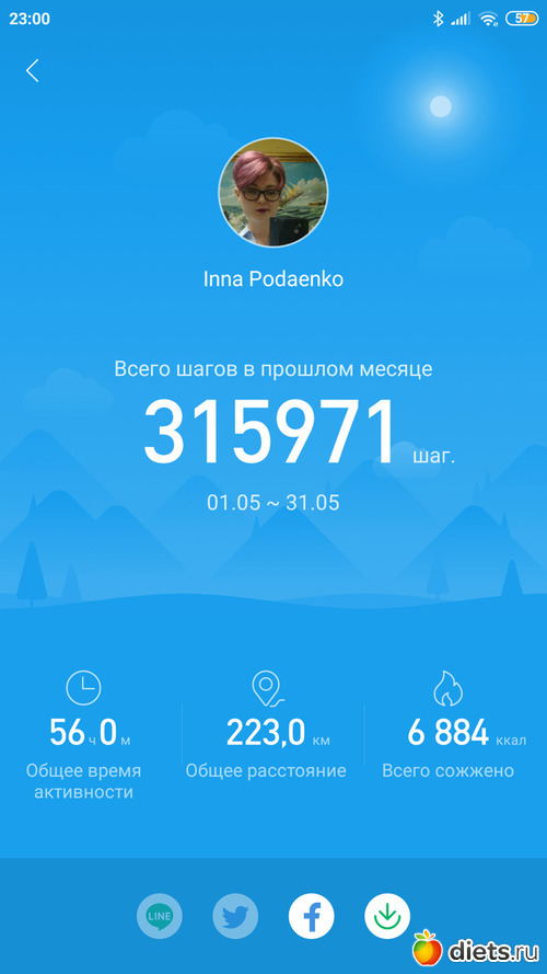 Итого 57310 шагов