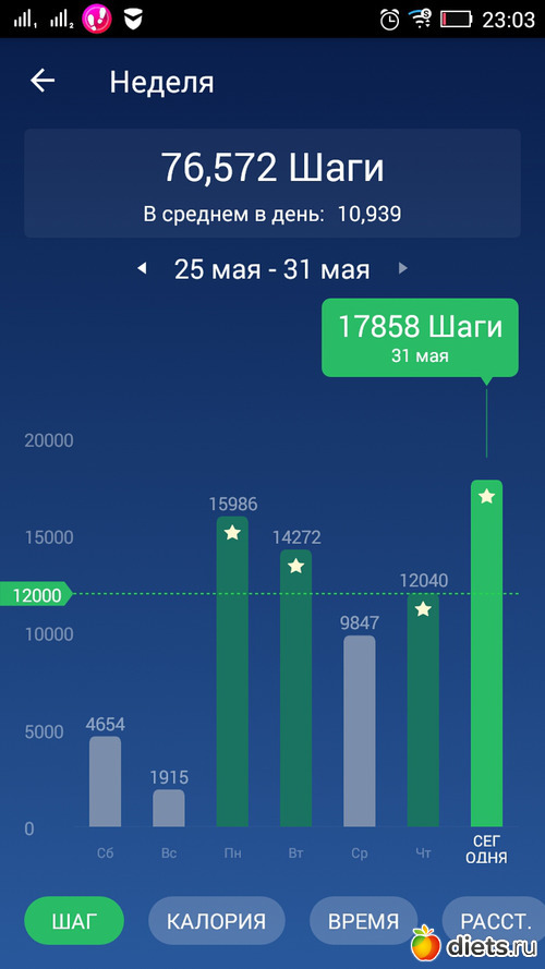Итого за неделю 120 867 шагов.