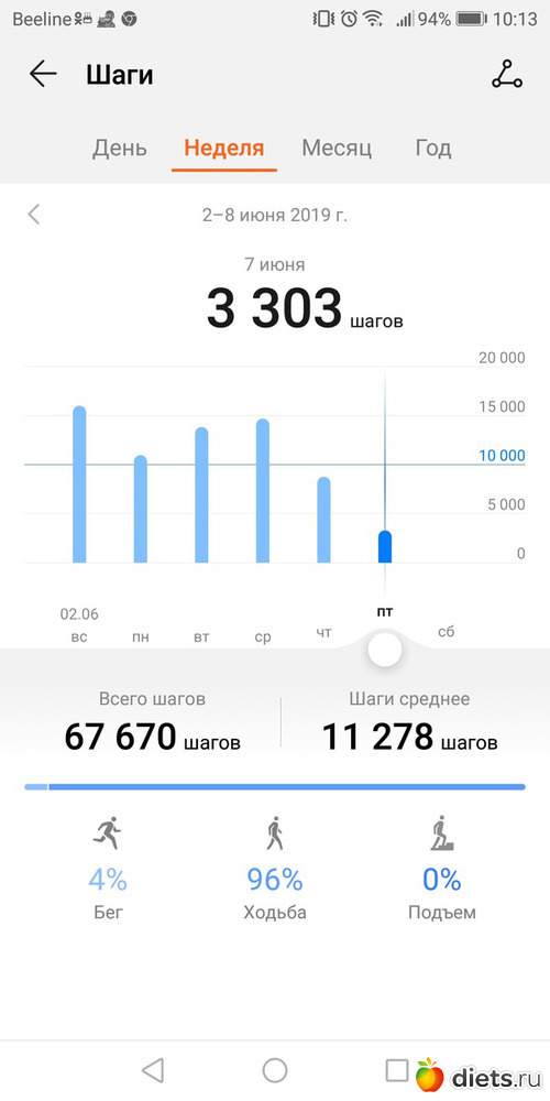 *ходьба как получится, если ставить план, выходит 77000 в неделю, 11000 в день - это реальная цифра
