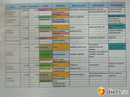 Цели на неделю: пить побольше воды, и хочу сбросить вес на 2 кг.