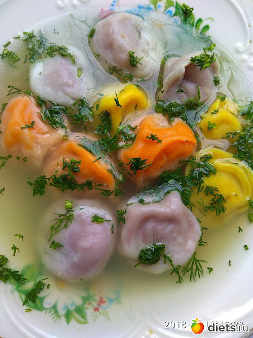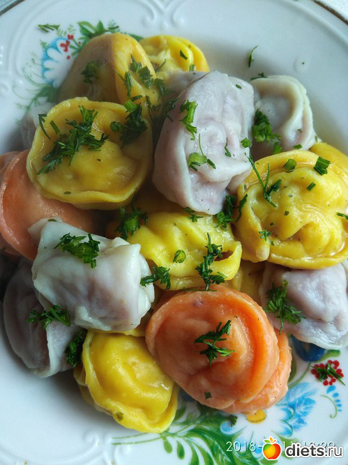 А вообще мое фирменное зимне-весеннне блюдо на которое я никогда не решусь летом это цветные пельмени.