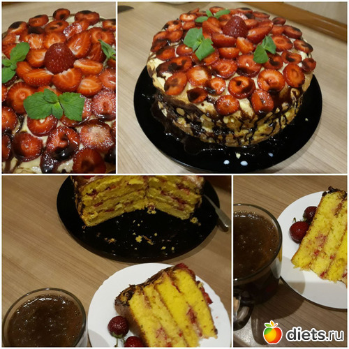 Поскольку я сладкоежка ужасная,то летом пеку в сезон клубники бисквит из клубникой,крем домашняя сметана,тортик для домашнего чаепития ,то не ровняла ничего,раньше делала белковый крем,тоже вкусно