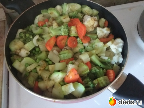 Состав: заморозка"Царская" от Бондюэль (там цветная капуста, брокколи и морковь, со скидкой прикупила)