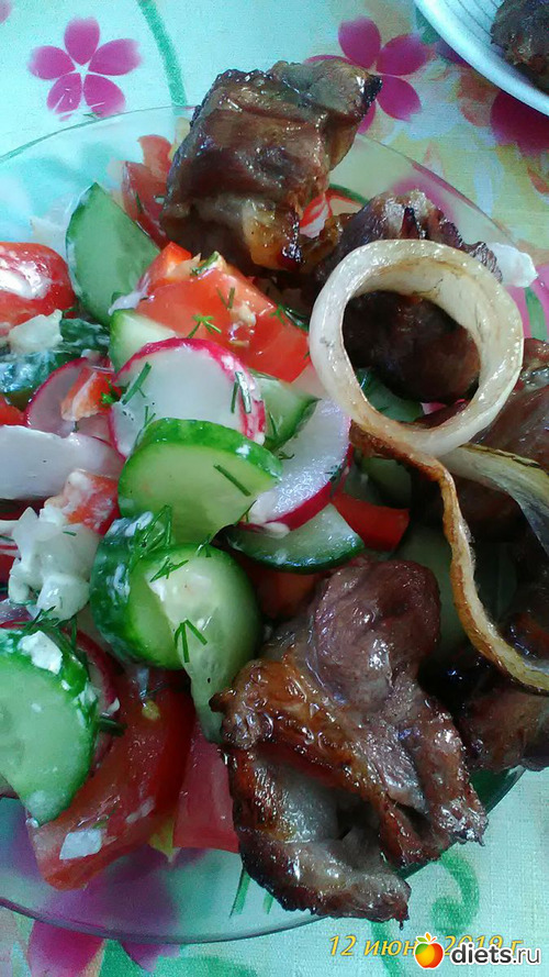 Мужа, правда, побаловала стейком. К нему всегда подаю большую порцию овощного салата: