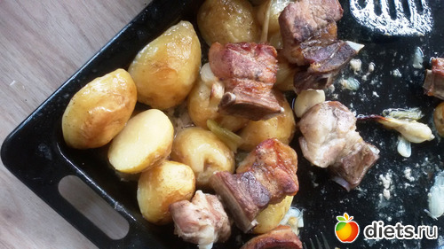 На этой неделе готовила молодую картошку с отбивными и свежим салатиком. И еще картошку запеченную в духовке (по-капитански или по-французски) - чего-то очень захотелось (картинка с инета, но очень близка к оригиналу)