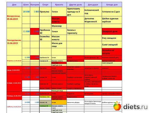 Вес ползет вверх, такое ощущение, что отекаю. Цели, которые ставила на неделю, выполнены на 50 процентов. Утреннюю гимнастику не пропускала, а вот упражнения для позвоночника делала только 1 раз.