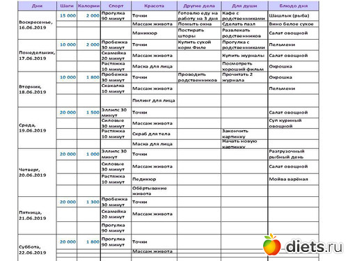 Цели на следующую неделю: прогулки перед сном, утренняя гимнастика, упражнения для позвоночника и добавлю кофейный скраб 2 раза в неделю и умывание овсянкой.