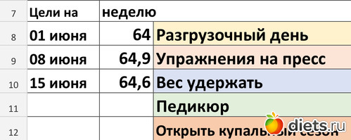 Цели на прошлой недели были такими: сбросить 1 кг, - прибавила на 100