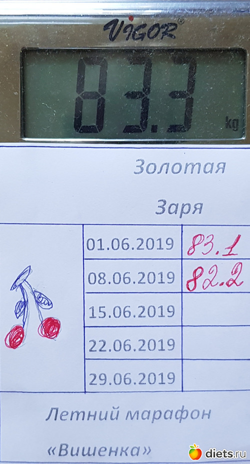 Я в плюсе и с "8"-кой. мамины солёные помидорки, праздник и вино сделали своё коварное дело!
