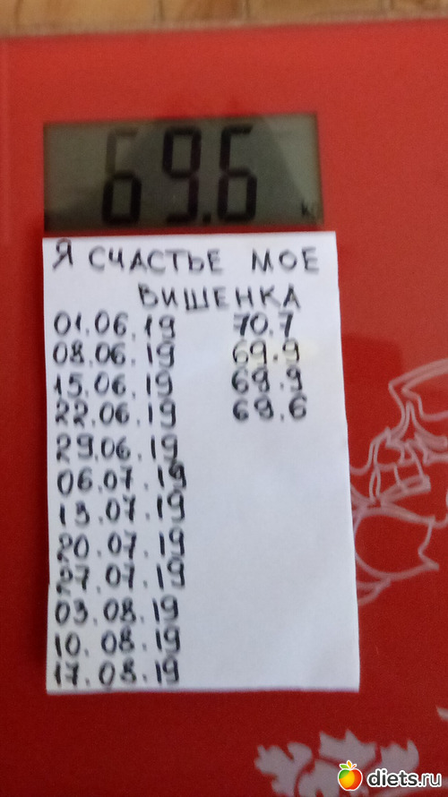 Так долго ожидаемые мои 69кг стойко держатся на моих весах! План июня - избавиться от одного кг - выполнен на 110%!!! Продолжаю :