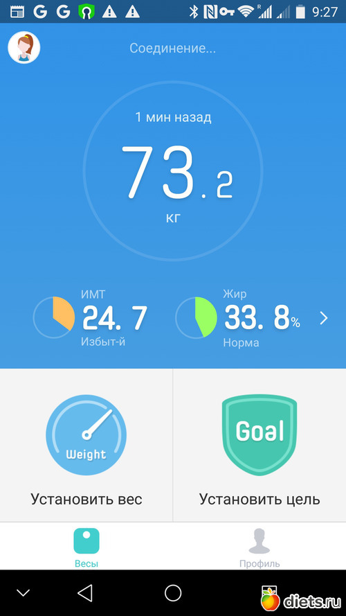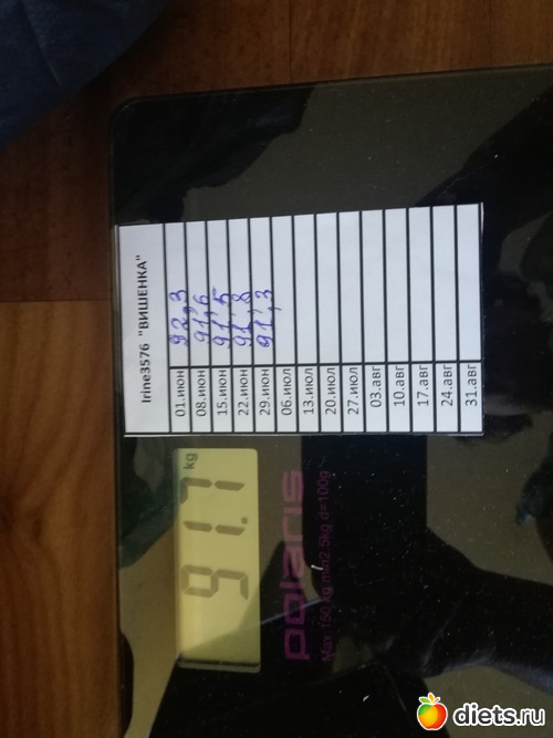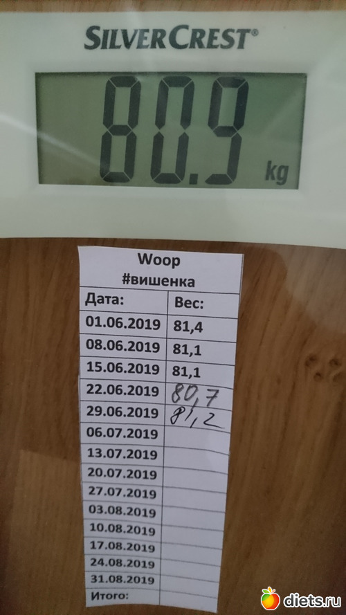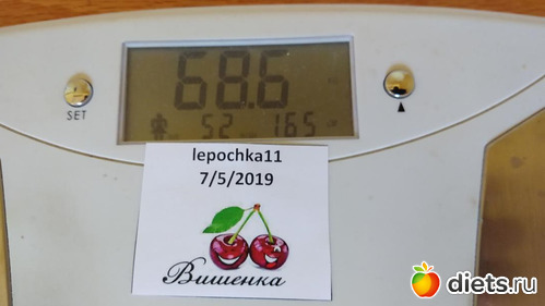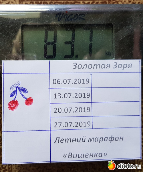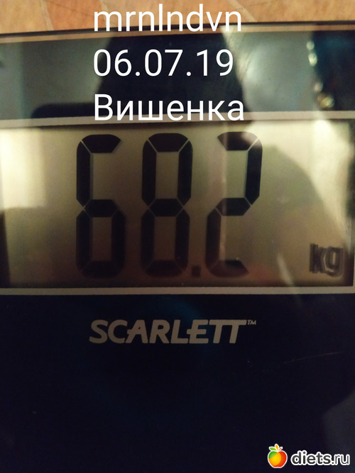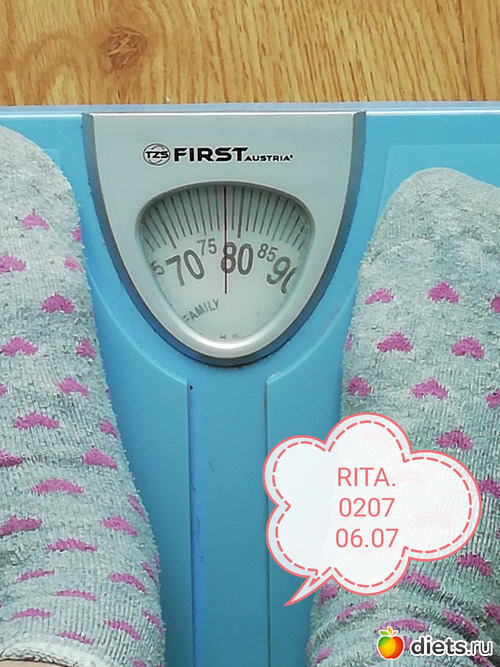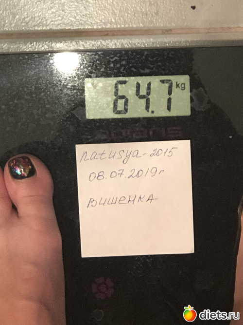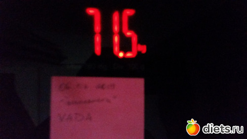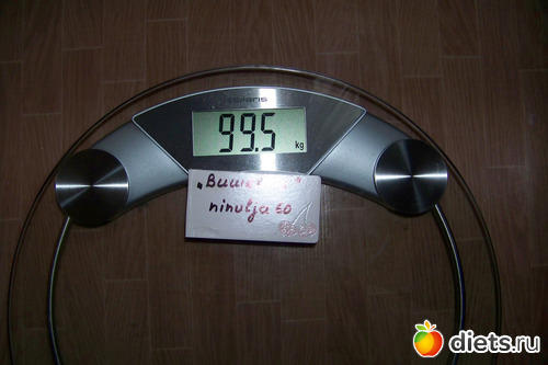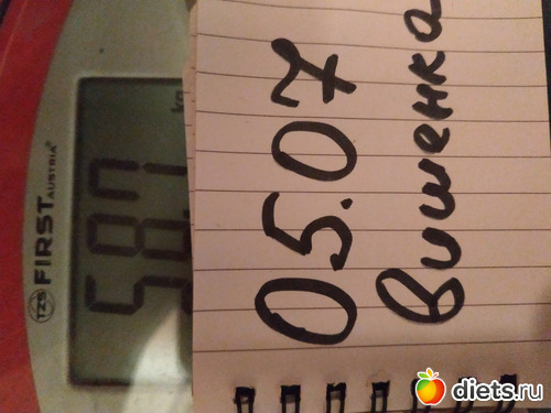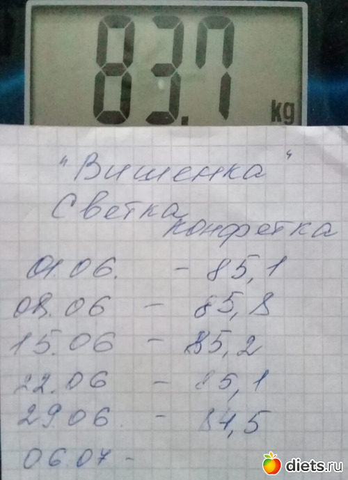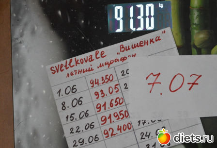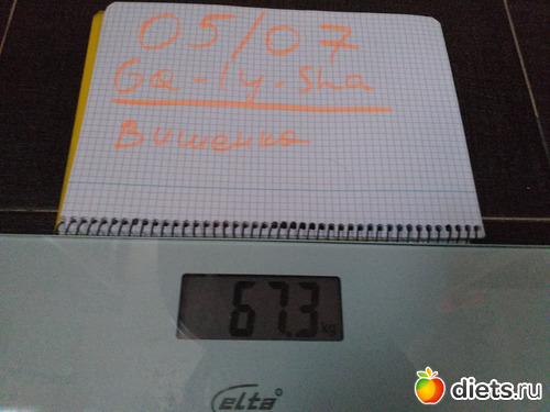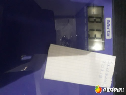 Сегодня у меня минус 100 граммов. Может, потому что на прошлой неделе было минус 1,5 кэгэ. Может из-за КД. Ну, в общем, не плюс на весах и это радует