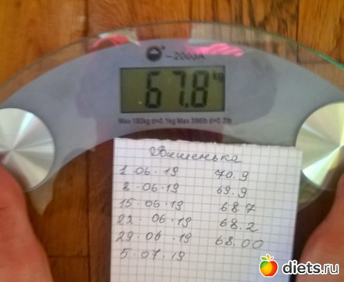 Цель 68,5 кг выполнена, воду по 2 л в день не смогла в себя влить.