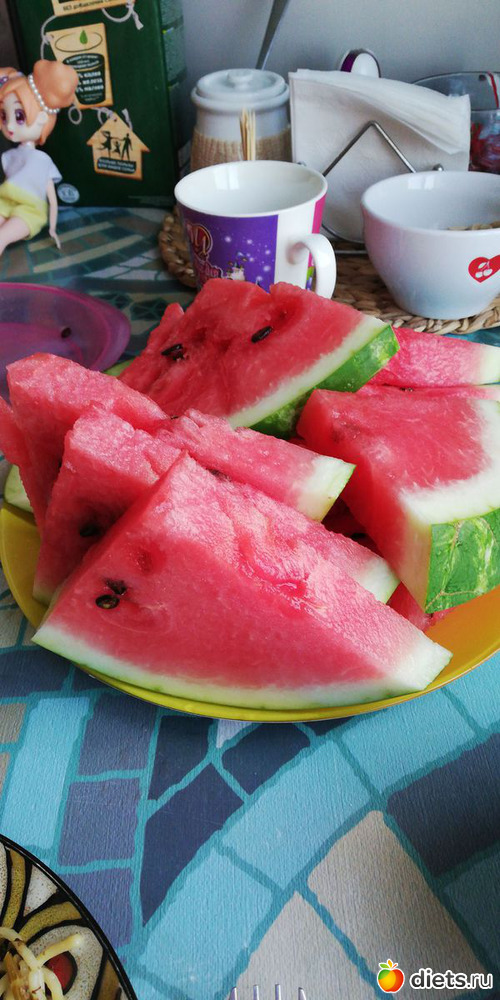 Ела все, что выросло в саду, холодно, ягод мало. Ещё купили на пробу арбуз. Вкусныыыый, забыла про фото. Красный, и сладкий. Спеет чёрная смородина, и крыжовник
