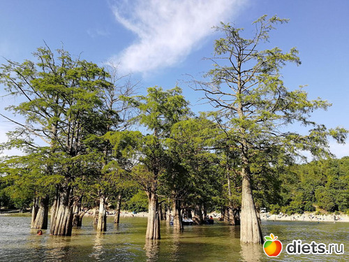 Фото есть с прошлого года, это городок под Анапой, Джемете, а рядом с ним есть Кипарисовое озеро. Деревья растут из воды и не гниют.