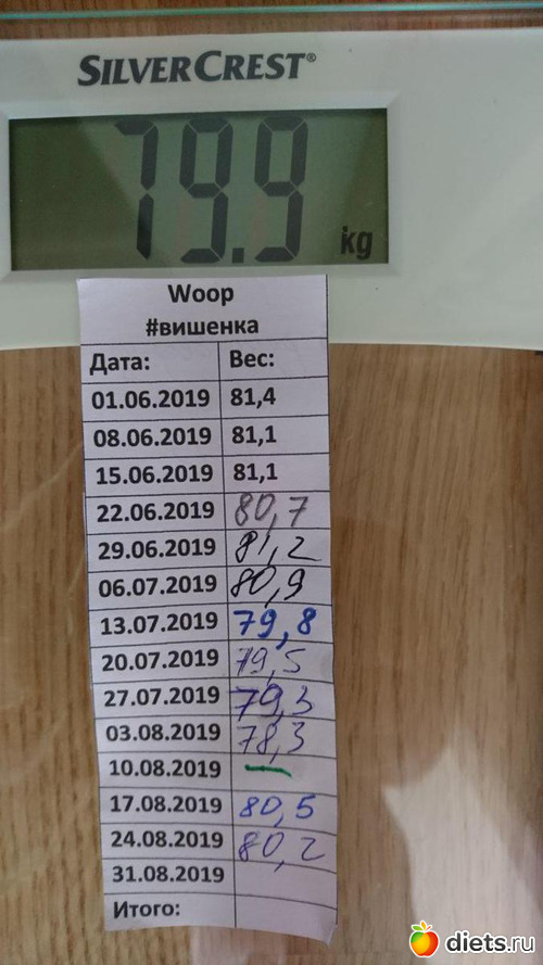 Отчет по весу -80 кг (плюс 100 грамм - тортик _ вчера коллега приносила за сынишку, неудобно было отказаться)