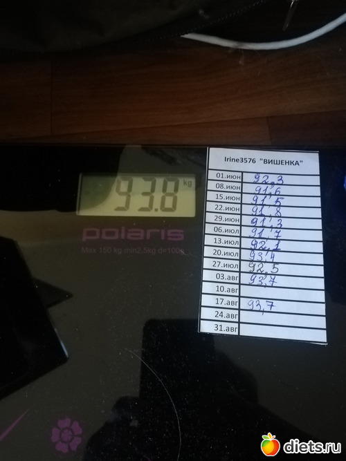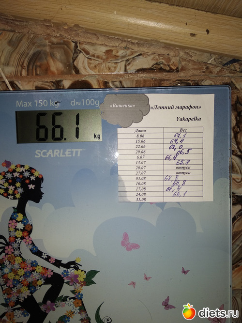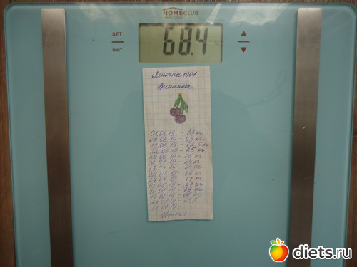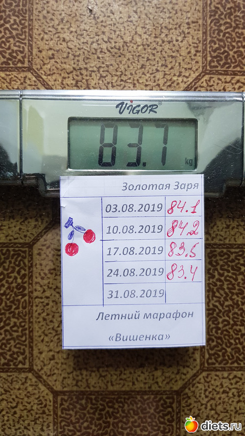 Мое крайнее взвешивание в марафоне. За неделю минус 500 грамм.