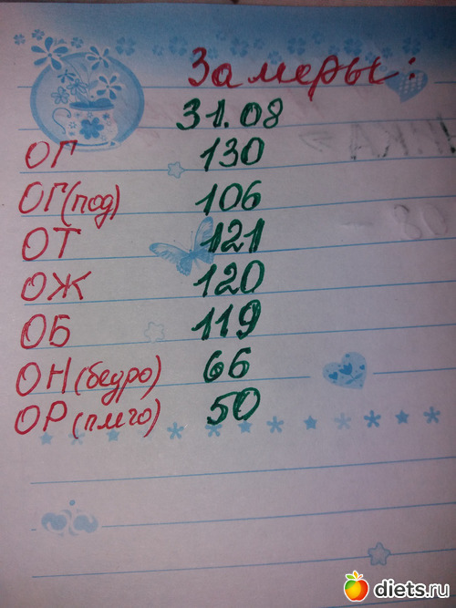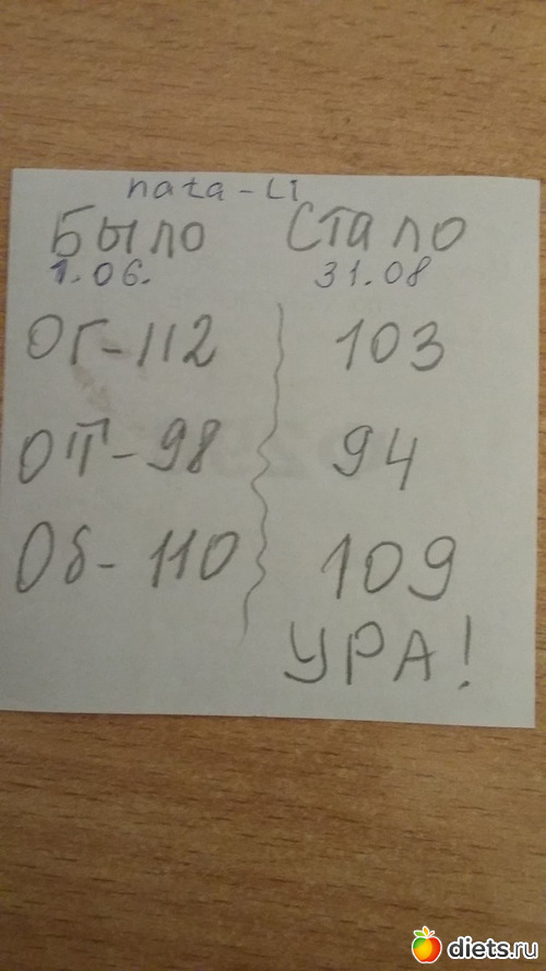 Итак: летний марафон привел меня к потере двух кг 68.6 (70.7 -2.1) и 9 см ОГ 104(0) ОТ 85(-3) ОЖ 88(-2) ОБ 94(-4)