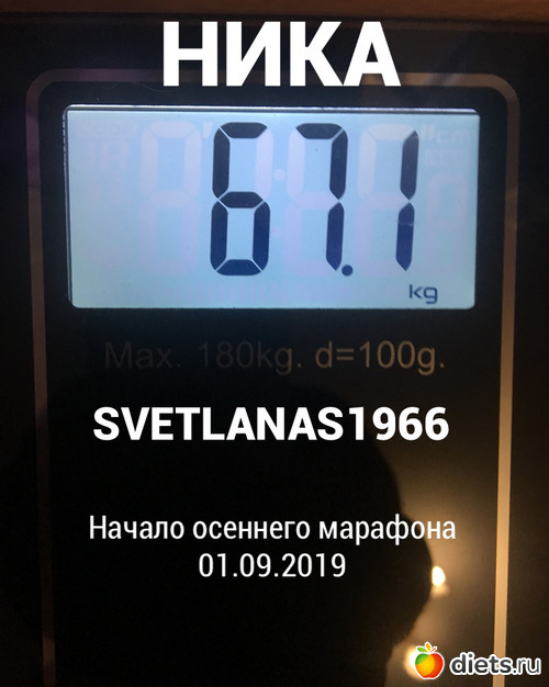 Марафон начинаю с веса 67,1. Не хочу считать, сколько набрала. Это в прошлом. Не оглядываясь назад, смотрю вперёд