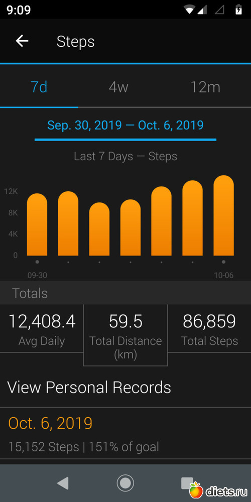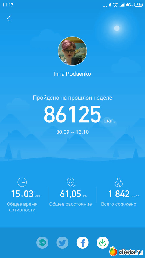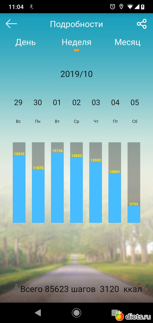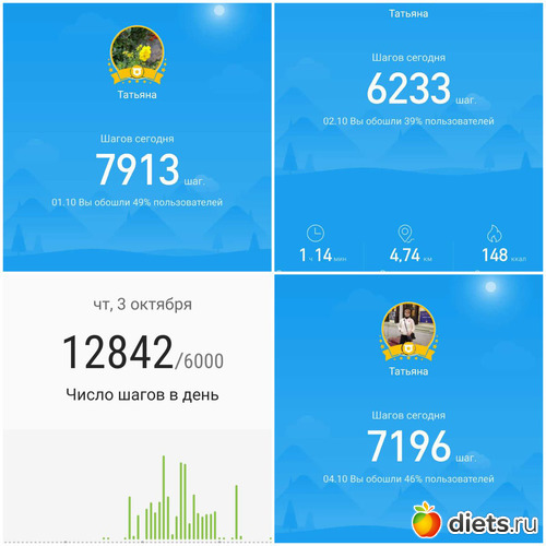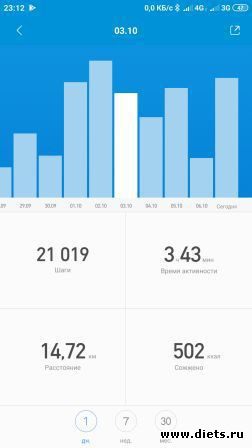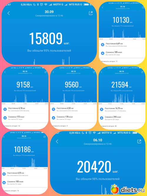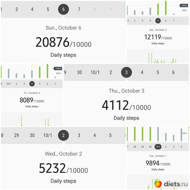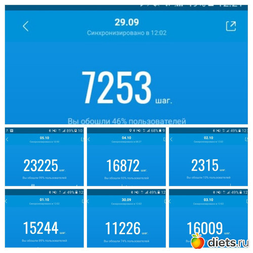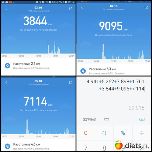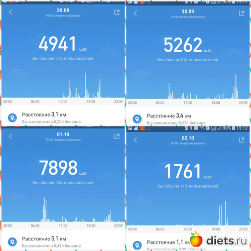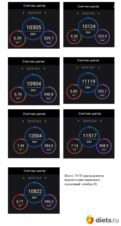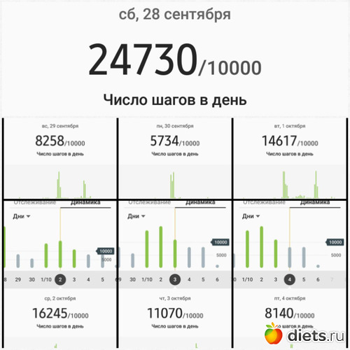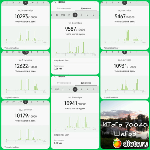 В фотоотчёт за 03 октября шаги вошли не все, к сожалению, что и повлияло на итоговое количество. Приложение дало сбой и пройденные шаги (порядка 5 000) просто обнулило