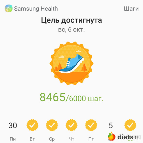 Вот на этом фото видны дни с галочками,прохождения нормированных 6 000 шагов в день