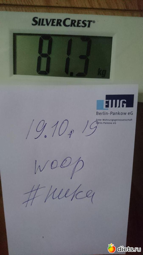 По весу. После зажорных выходных результат за неделю минус 100 грамм. Ладно, хоть не плюс.