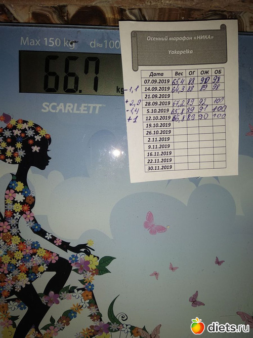 Цель - увидеть на весах 70,... не выполнила. С остальным справилась