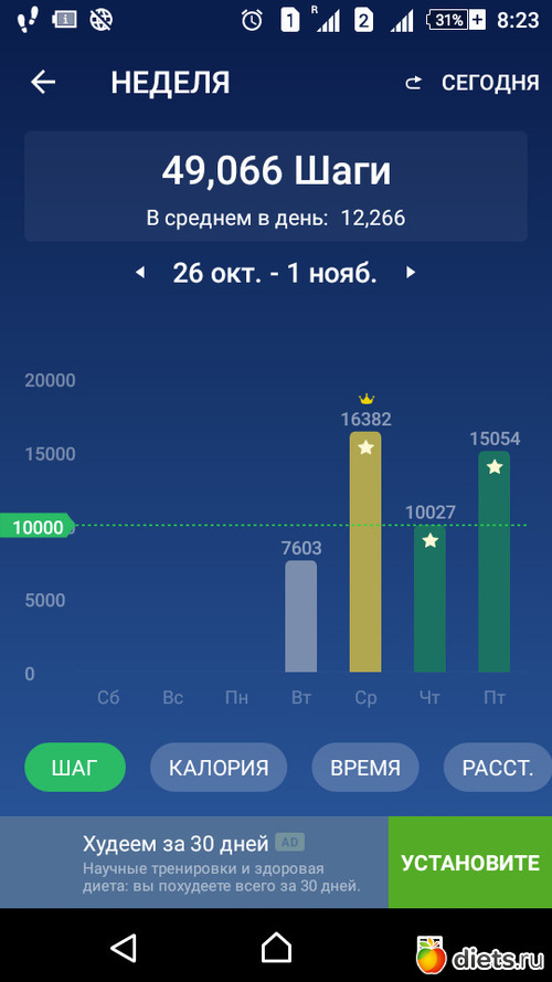 Цель следующей недели: не менее 50 000 шагов.