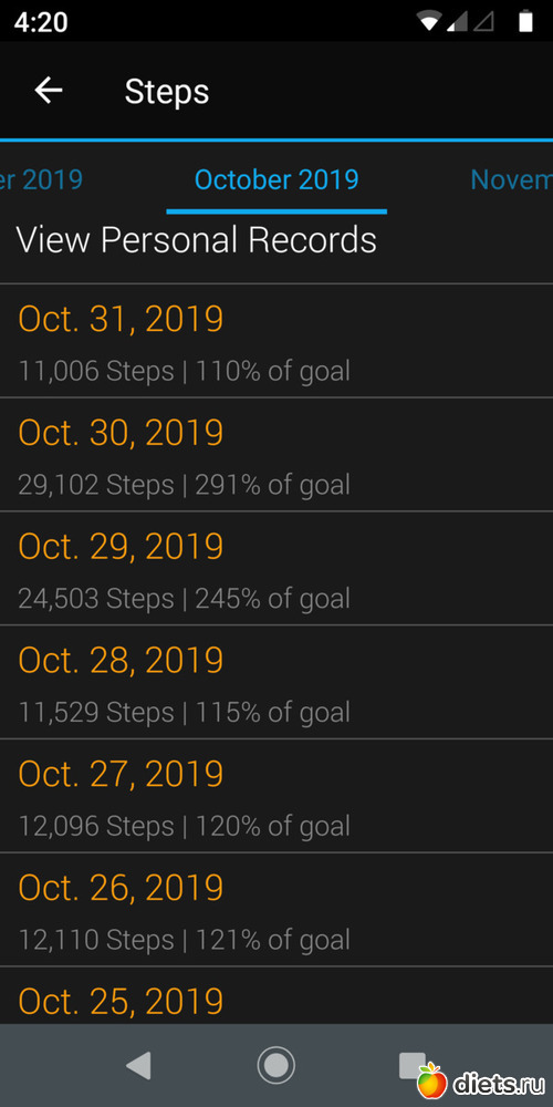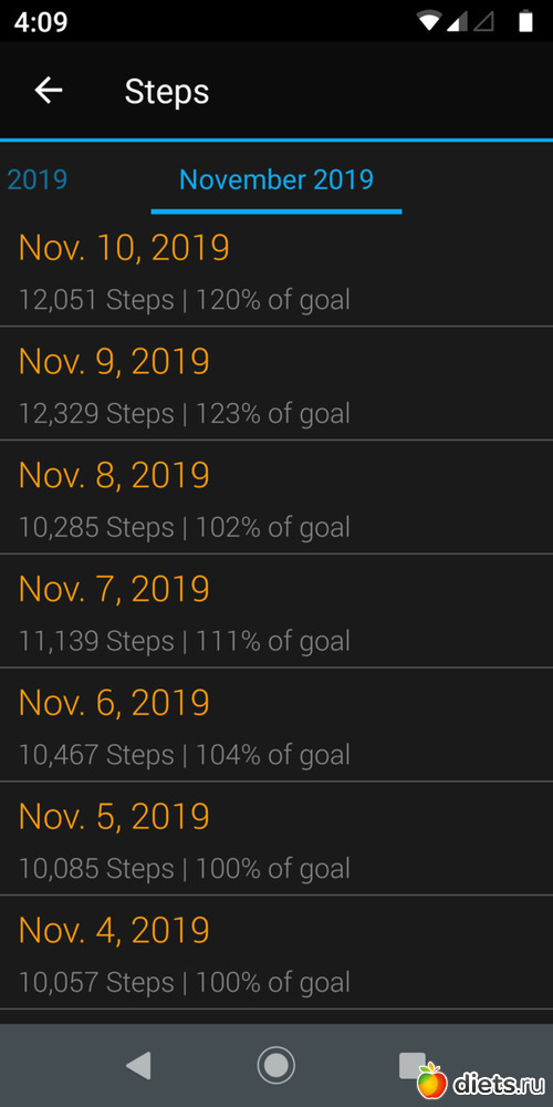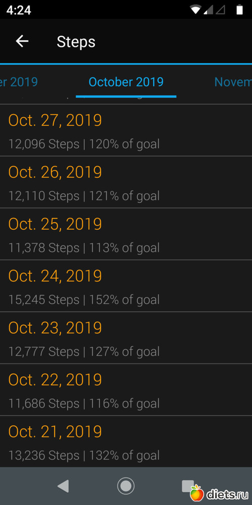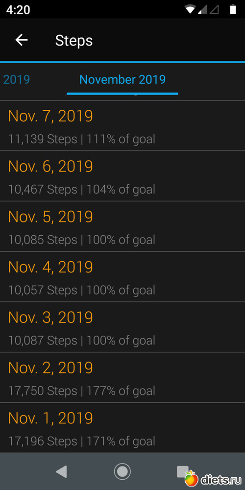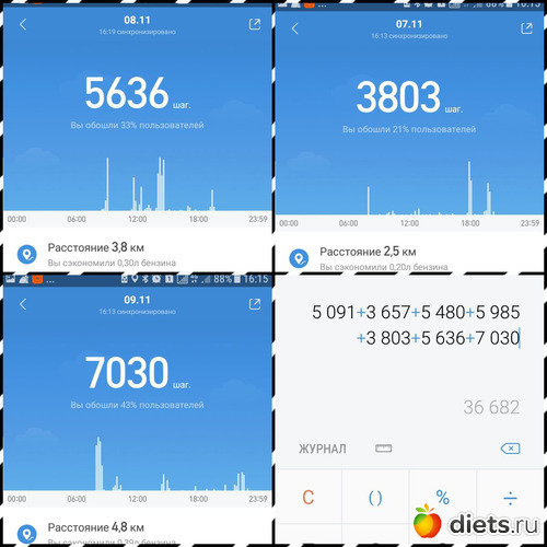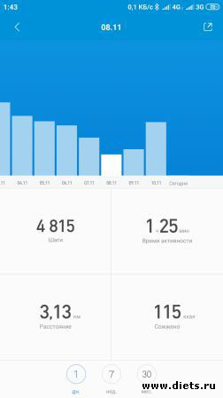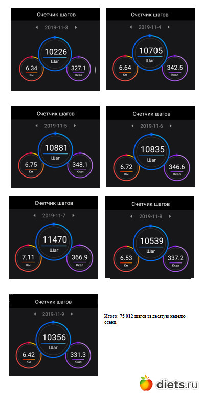 Эта неделя не такая унылая плане шагов, как прошлая. План в 8 тысяч в день практически выполнен - за исключением двух дней.