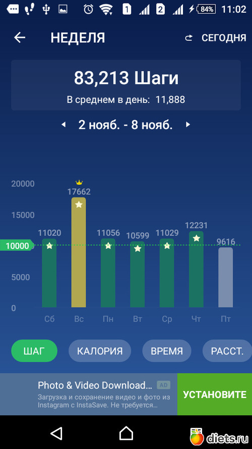 План следующей недели прежний - минимум 8 тысяч шагов в день