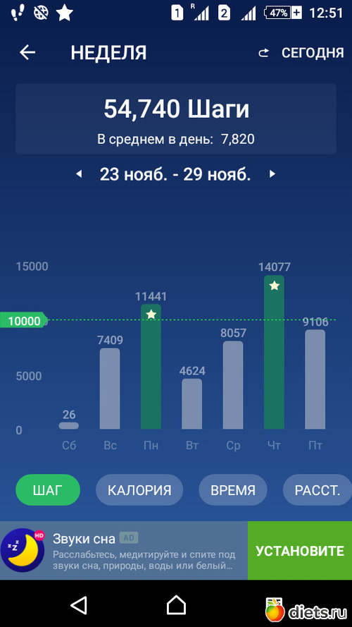 Целью недели было проходить хотя бы 4 000 шагов в день.