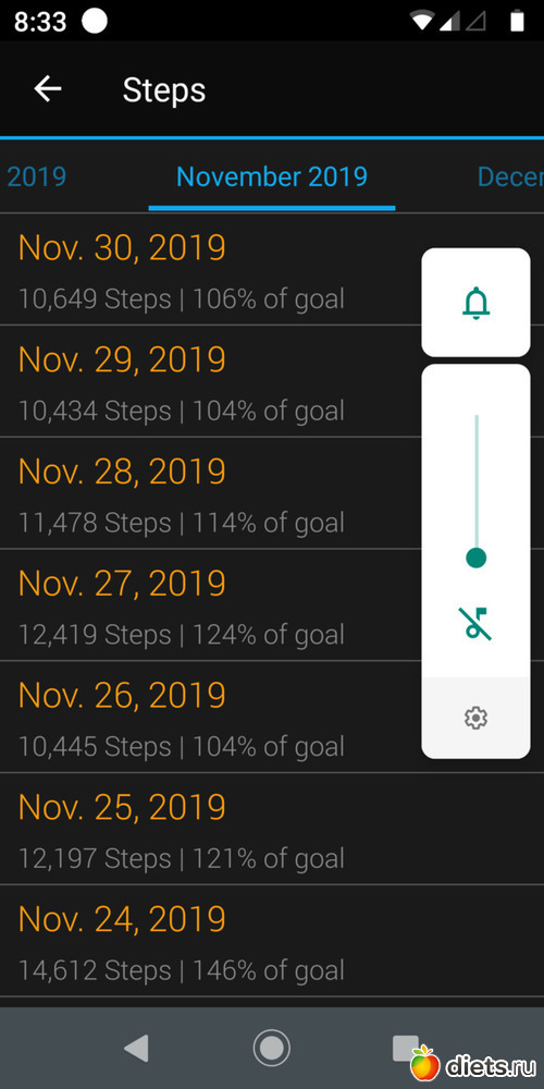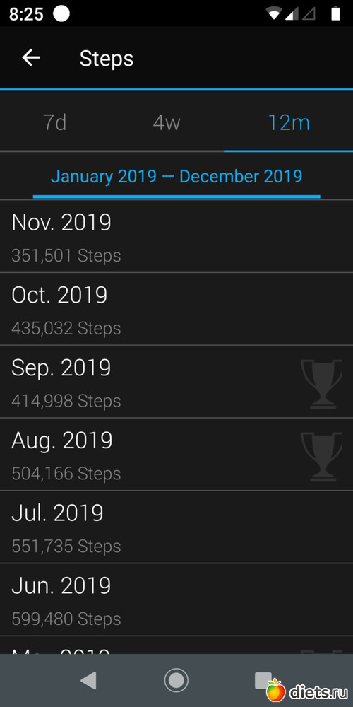 Цель в 8 тысяч шагов в день выполнена на 50%