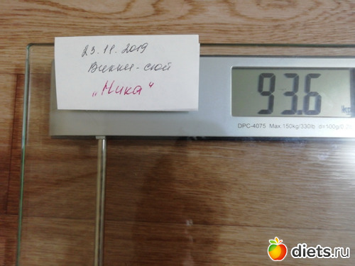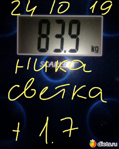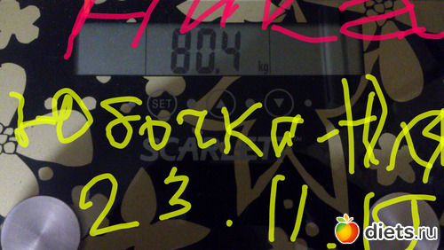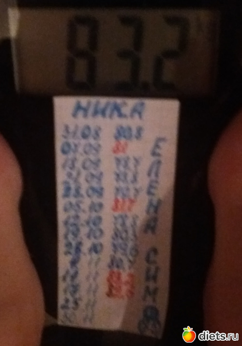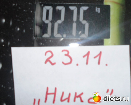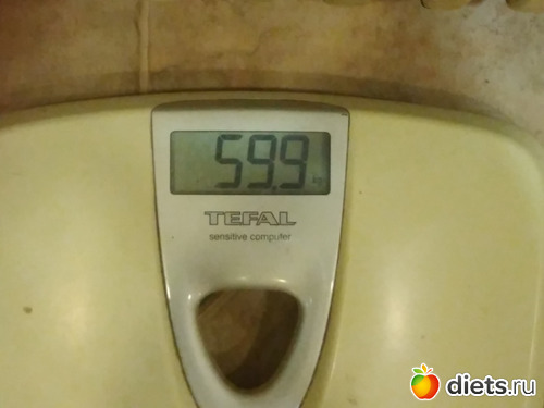 По весу. На прошлой неделе взвешивалась после выходных на пирогах - вес на месте. На этой неделе взвешивалась после соблюдения питания и тренировок всю неделю - и всего минус 200