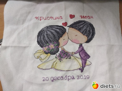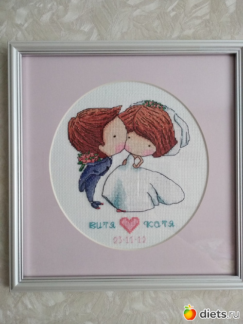 Еще одну закончила, тоже отдала в багетную оформлять, подарю коллеге на День свадьбы