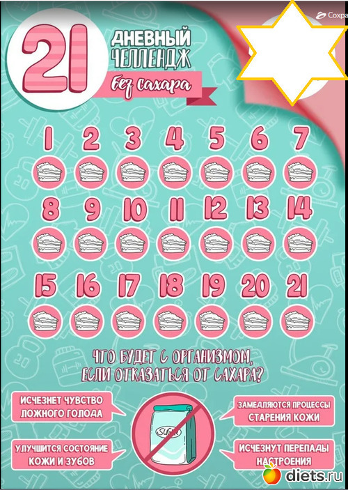 Насчет задания за сахар - попробую, ем его очень мало, буду пробовать совсем отказатся