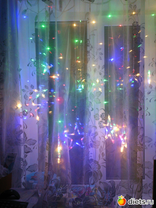 Дождь не стали вешать ибо собирать по ниточке по всей квартире не хочется.