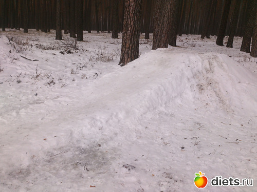 Основание: крутая куча щебенки, на продолжение горки насобирали снега вокруг, трамбовали и поливали три дня.