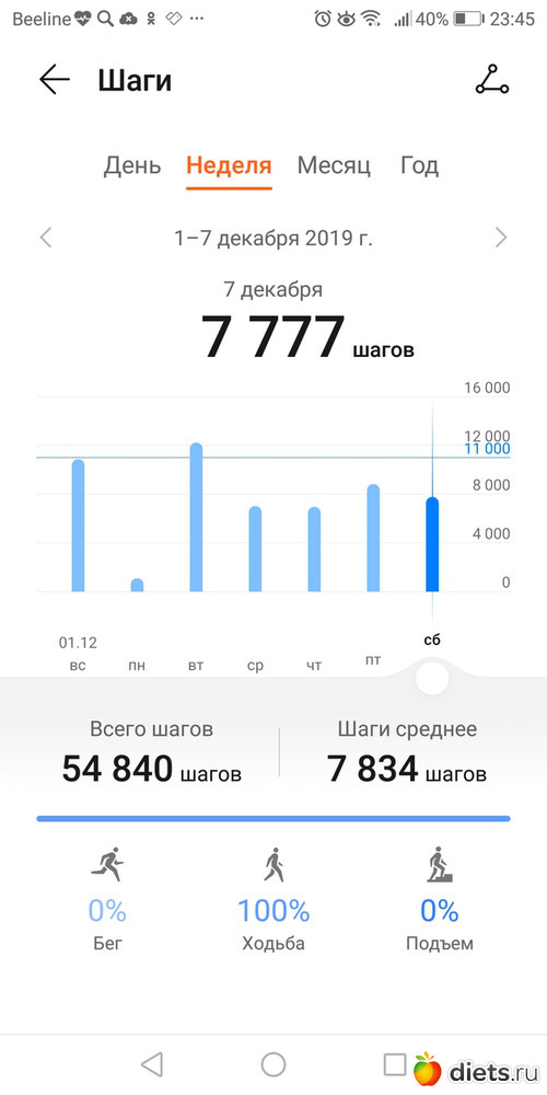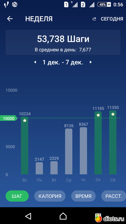 Цель на следующую неделю - 70 тыс.шагов