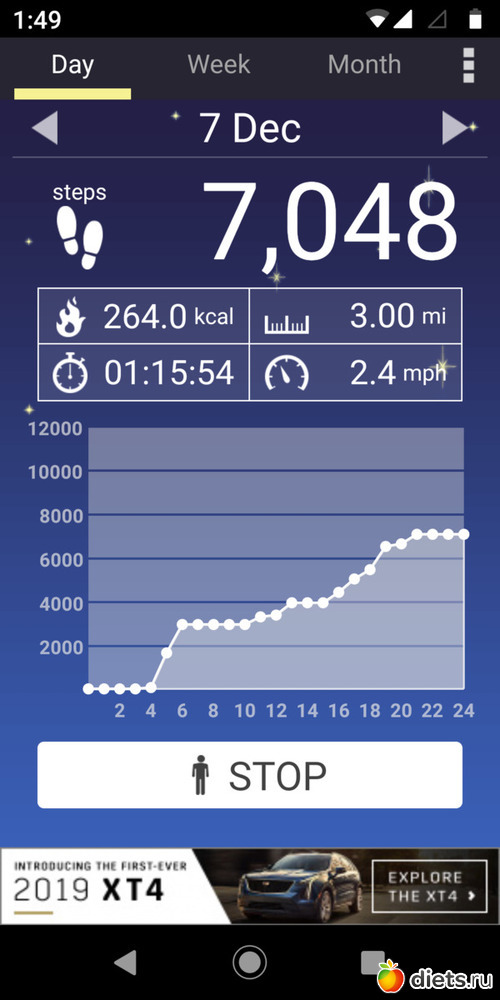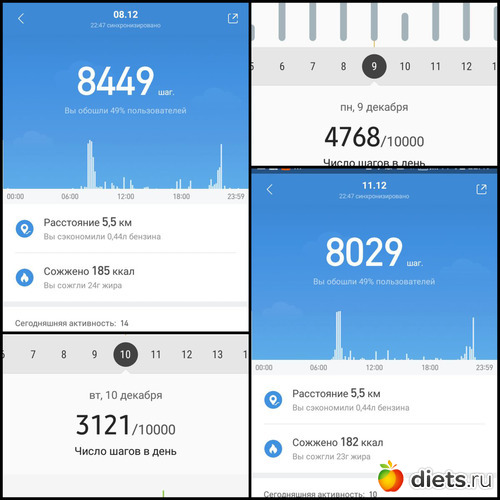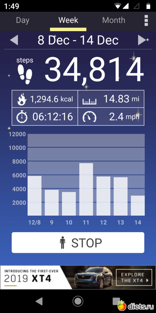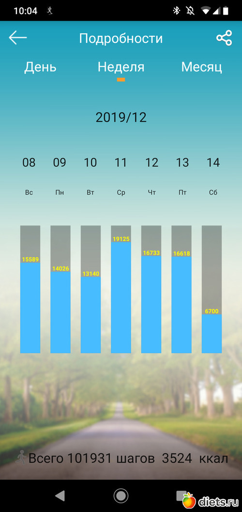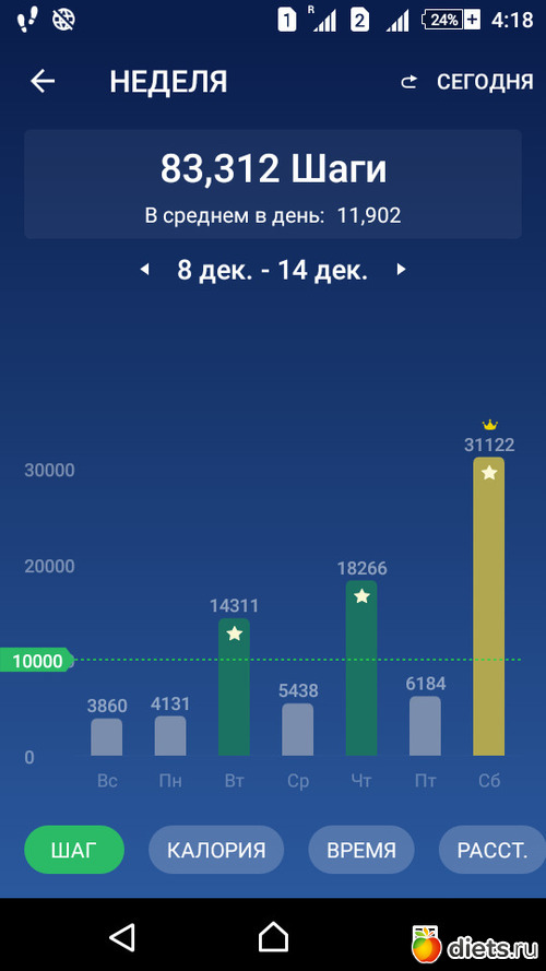 Всего шагов 64035 за неделю, маловато.