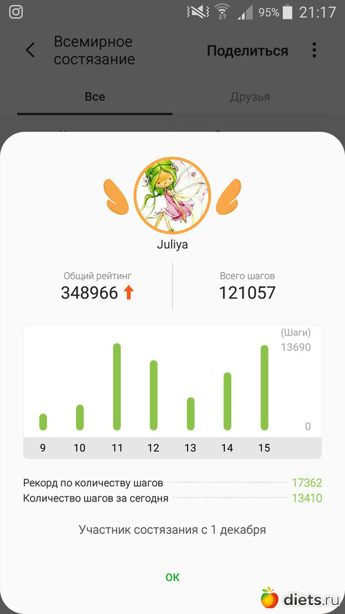 К цели я к сожалению не дошла. А еще, браслет дома забыла, так у меня вообще день выпал, всего 285 шагов защитал. Ну, что есть.