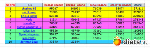 Было 11, но одна участница покинула состязание за два подряд неотчёта без предупреждения