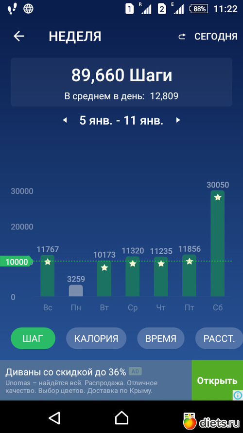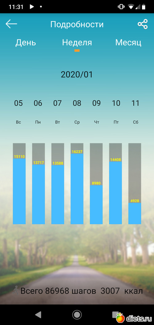 Целью недели были 50 000 шагов + наказание 1 000 шагов.