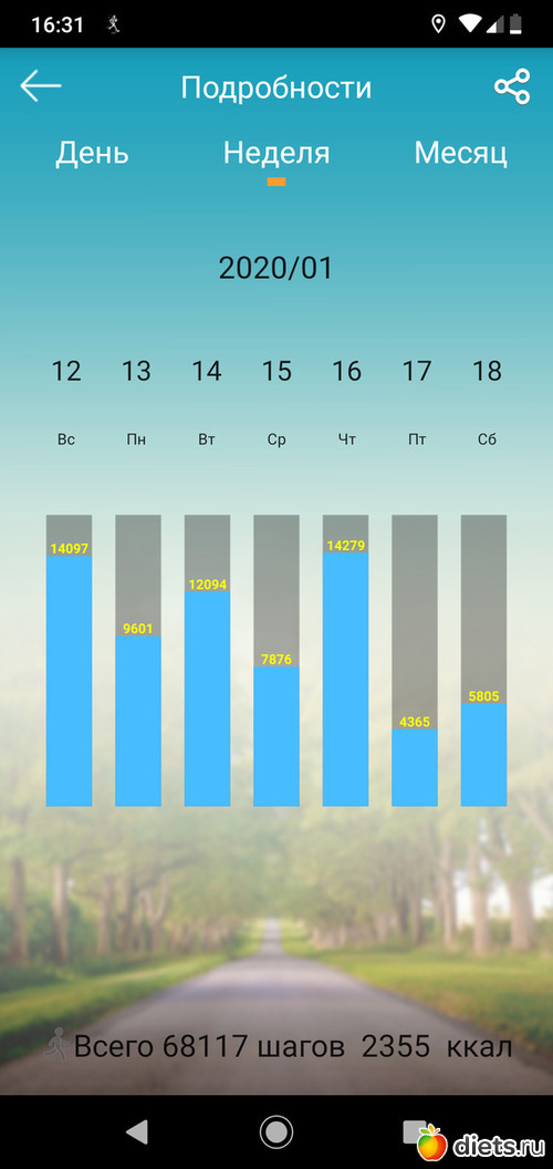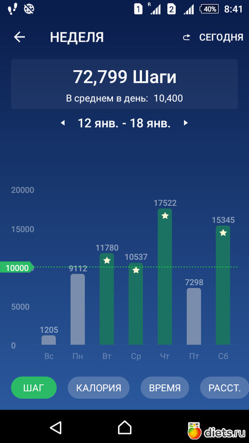 Целью недели были 40 000 шагов + наказание 1 000 шагов.