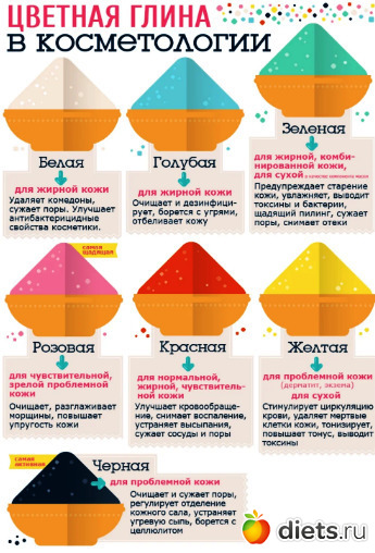 Красота: глина это очень хорошее средство. Пользуюсь ей периодически, и для лица и для волос и для тела. У меня глина сильо сушит, поэтому и пользую нечасто, и только в смеси с маслом.