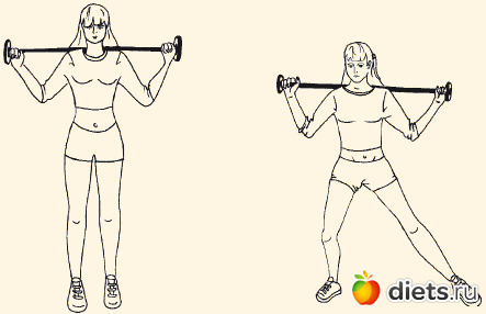 Техника упражнения: Исходное положение – ноги вместе. Правой ногой сделайте шаг в сторону и присядьте на правую ногу. Опорная нога должна быть прямой. Внутренний свод стопы опорной ноги прижат к полу. Силой мышц рабочей ноги вернитесь в исходное положение и повторите выпад другой ногой.